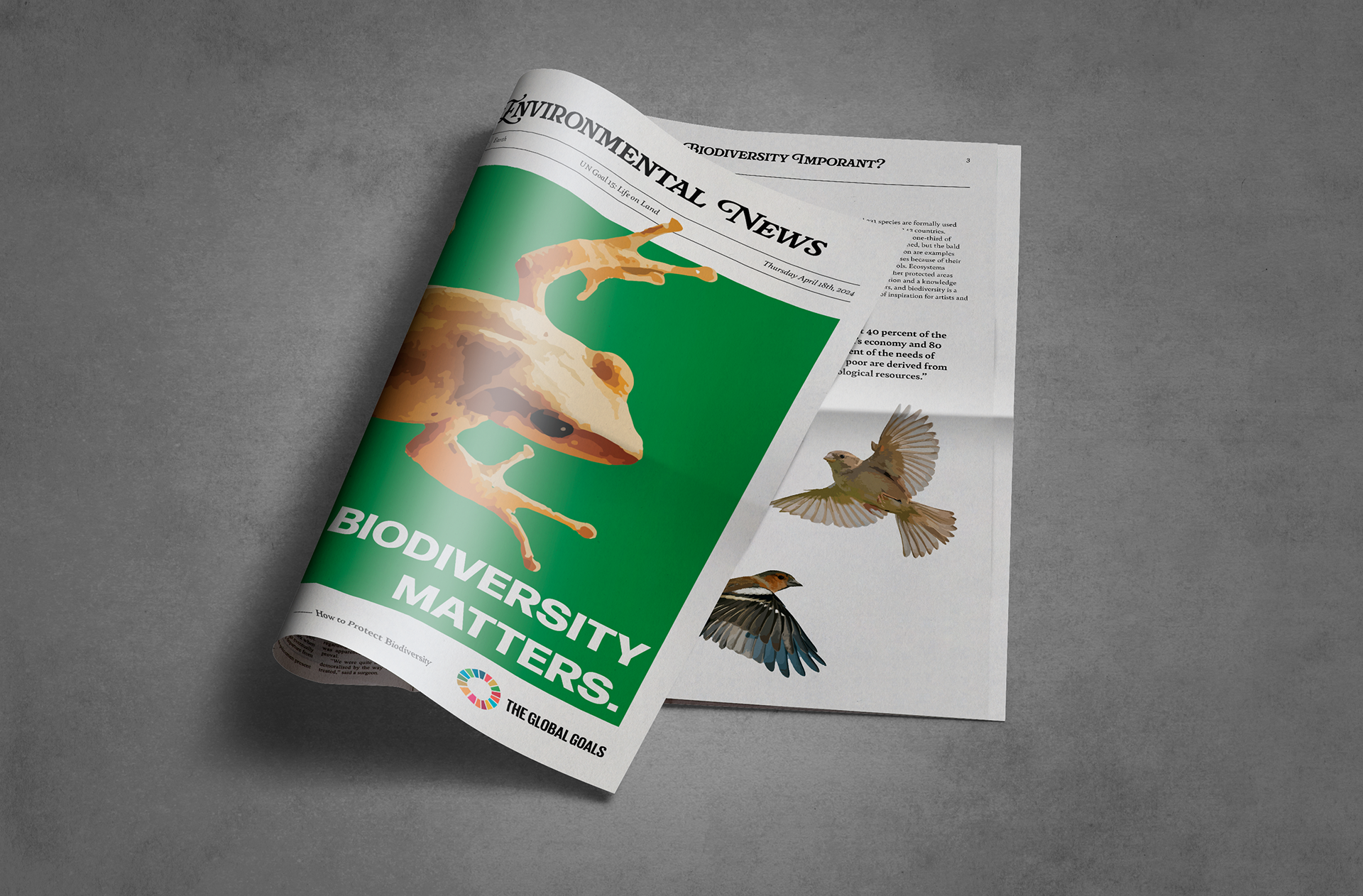 A newspaper on environmental news, this paper focuses on preserving biodiversity and why it's important. This project was done for Type and Image in SUNY New Paltz.